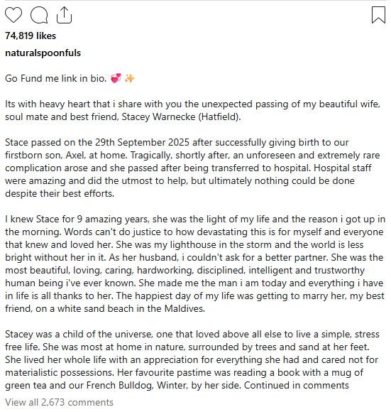 Food Influencer Stacey Hatfield Dies From ‘Rare’ Complications After Giving Birth