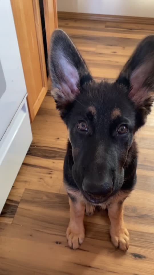 Zeus Jr. — the floppy-eared German Shepherd puppy — sat perfectly still beside the stove. His big brown eyes sparkled like melted chocolate, his tail tucked just enough to suggest innocence.