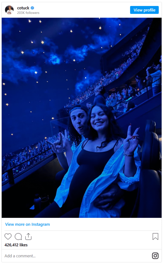 Tucker, who rarely posts on social media, shared a sweet snap with Hudgens on April 27 on Instagram. In the photo, the actor posed with her bump visible under her black dress as she gave a peace sign for the camera while the MLB star made a silly face.